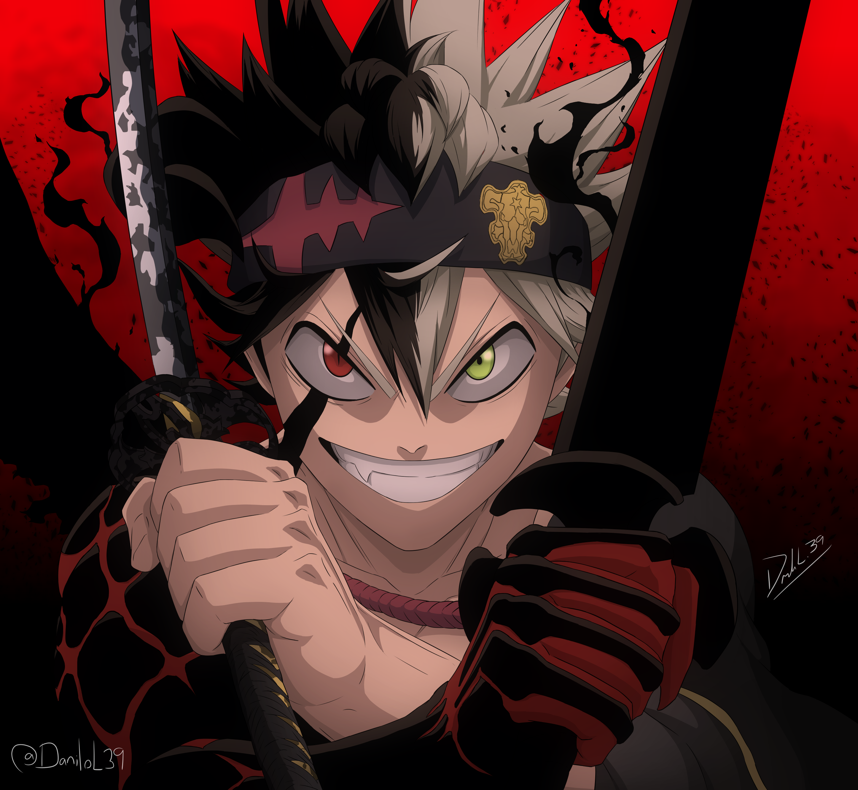 Asta is the main protagonist in the series, Black Clover. He is an orphan who was raised under the guidance of a church in a village called Hage. He's a wielder of the 5-leaf clover grimoire, as well as a member of the Black Bulls and the Royal Knights. He's a 3rd Class Junior Magic Knight.